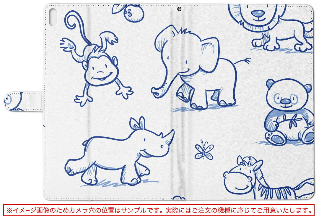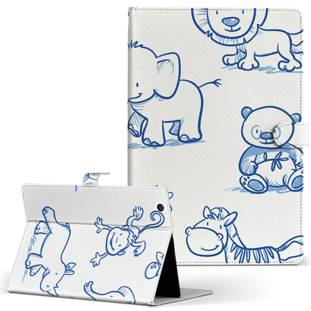 dtab Compact d-42A Lenovo docomo ドコモ Sサイズ 手帳型 タブレットケース カバー レザー フリップ ダイアリー 二つ折り 革 009723 動物 サファリ 青